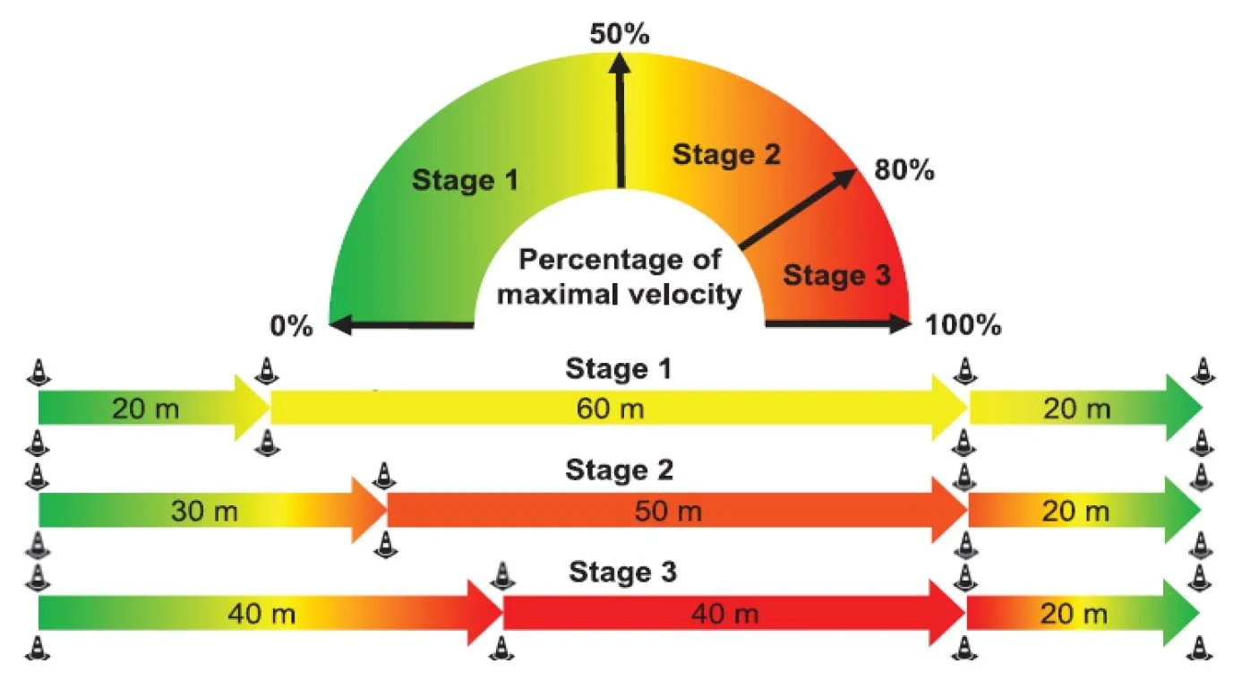 Gradual exposure to high-speed running, sprinting (if relevant), kicking or sport‐specific movements with monitoring for pain or compensation.